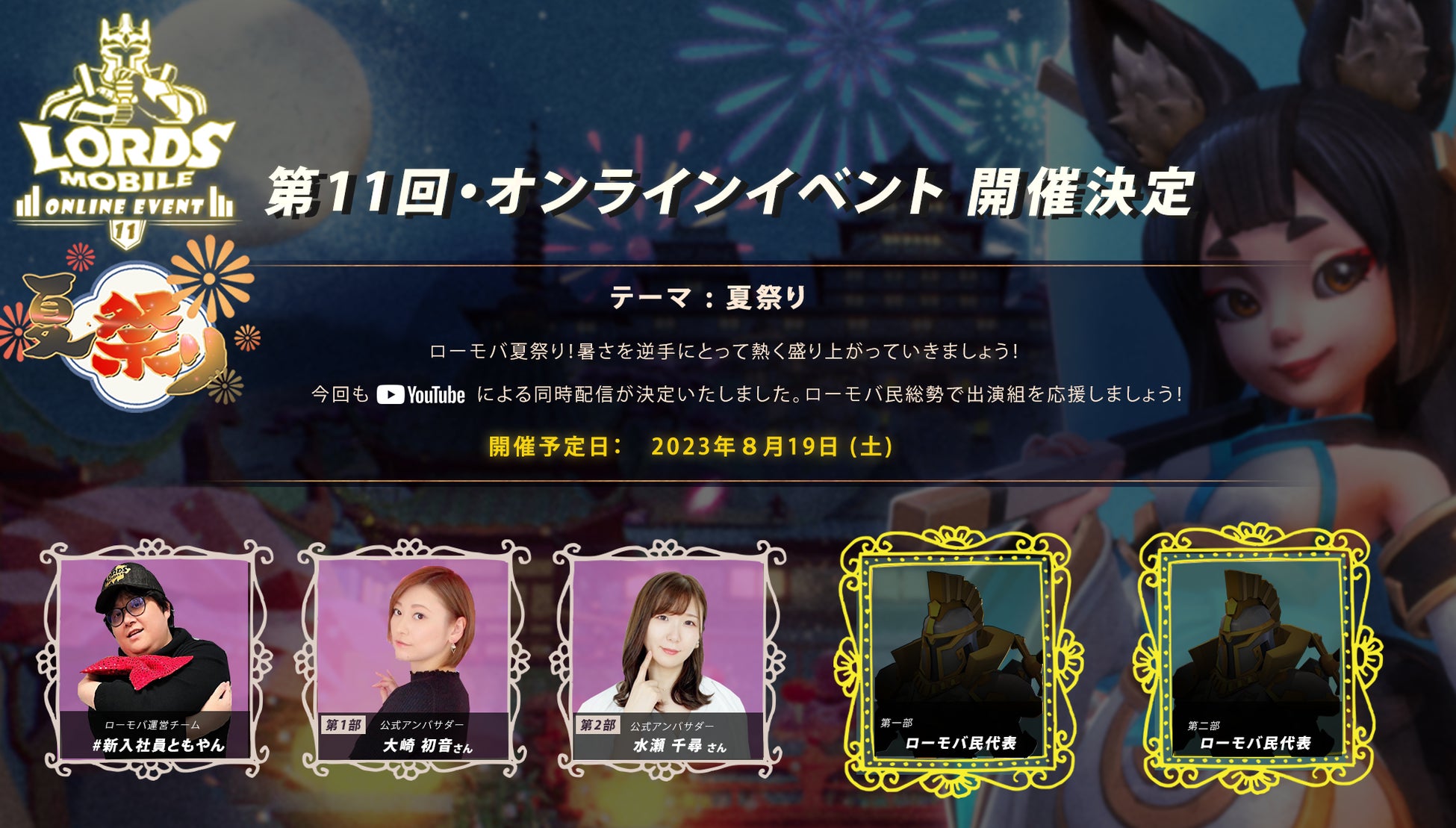 IGG、世界的なスマートフォン向けゲームアプリメーカー、は2023年8月19日に「第11回・ローモバ!オンラインイベント」を開催します。