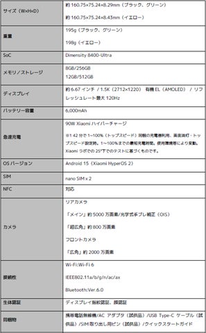 - 6000mAhの大容量バッテリーと90W急速充電に対応