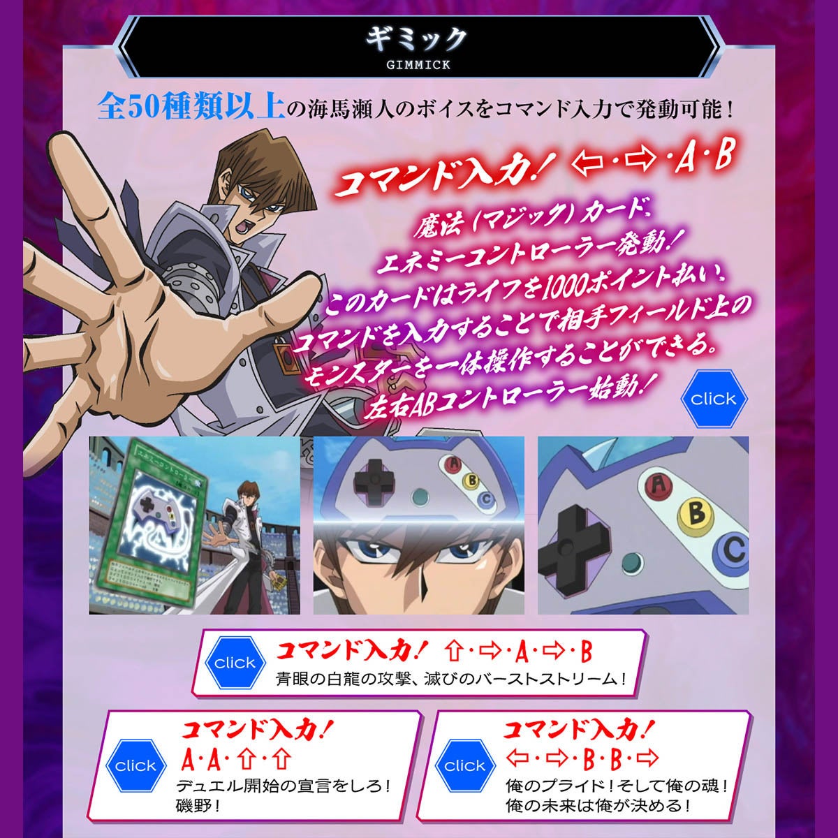 この商品には、海馬瀬人が使用する魔法カード「エネミーコントローラー」が登場し、新たに撮り下ろされたボイスが50種類以上再生されます。