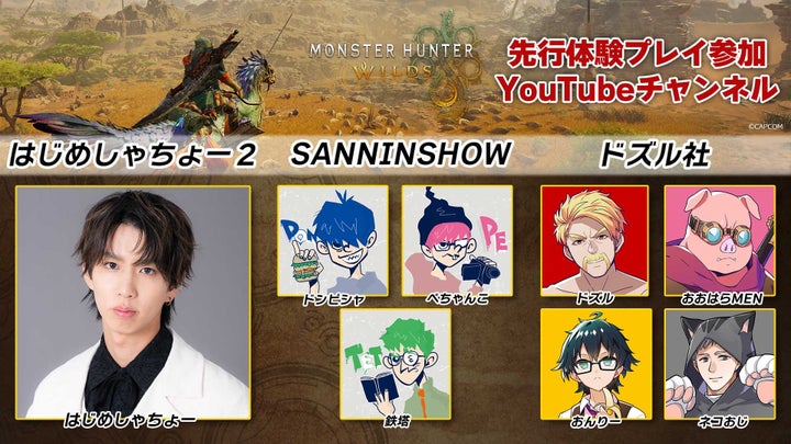 人気YouTuberはじめしゃちょー、三人称、ドズル社が『モンスターハンターワイルズ』を先行プレイした映像が公開されました。