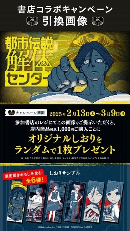 さらに、「少年ジャンプ+」でオリジナル漫画『都市伝説解体センター 異聞:くねくね』(著:高橋ヒデキ)を公開、全国51店舗の書店でオリジナルしおりがもらえるキャンペーンも開始した。