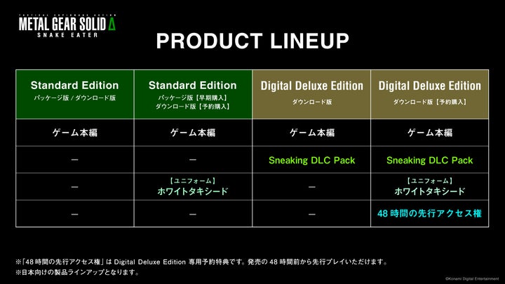 デジタルデラックスエディションとコナミスタイル限定版の一部には、48時間の先行アクセス権も含まれています。