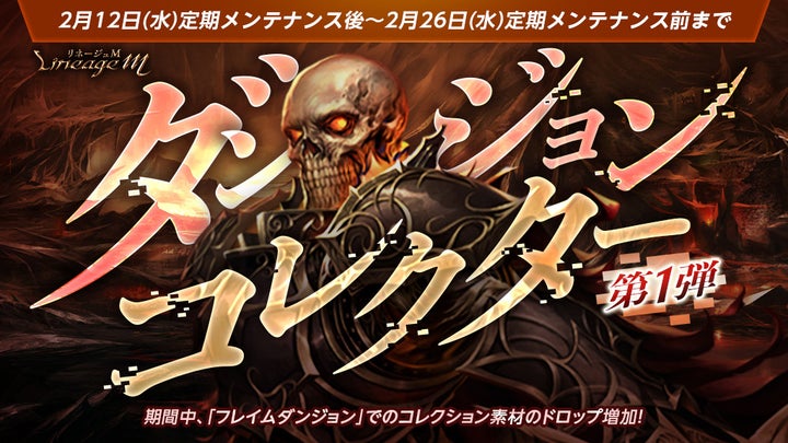 また、2月12日から26日までは4週連続イベント「ダンジョンコレクター」の第1弾として、「フレイムダンジョン」のドロップアイテム増加とイベントクエストが実施されます。