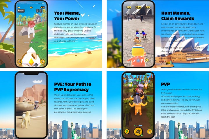 本βテストでは、新しいミームの追加やUI/UXの大幅な改善が施され、GameFi、MemeFi、SocialFiといったWeb3技術とAI技術を融合した位置情報型モバイルメタバースゲームとして進化した「RealGo」を体験できます。