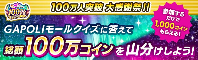 オンラインゲームセンター『GAPOLI』がユーザー数100万人を突破し、それを記念して様々なキャンペーンが開催されます。