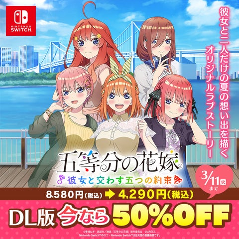 各タイトルのセール価格は、50%オフもしくは64%オフとなっており、バレンタインデー、ホワイトデー、春の新生活に向けてお得なセールとなっています。