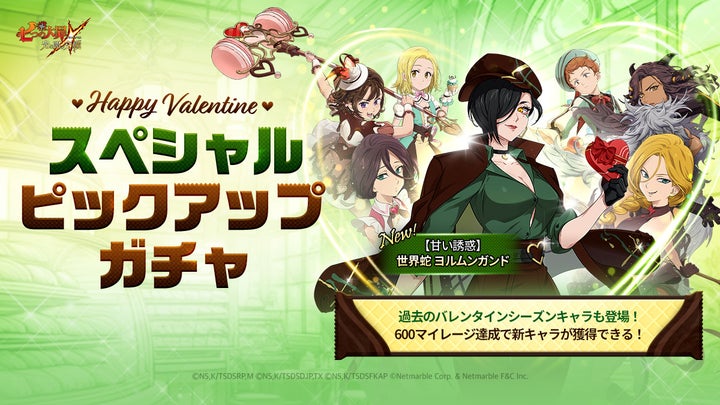 新キャラクター「【甘い誘惑】世界蛇 ヨルムンガンド」が登場するピックアップガチャや、バレンタイン限定イベント(デイリーミッションでチョコをプレゼントして報酬獲得、ワールドクエスト復刻、バレンタインコスチューム登場)が開催されています。