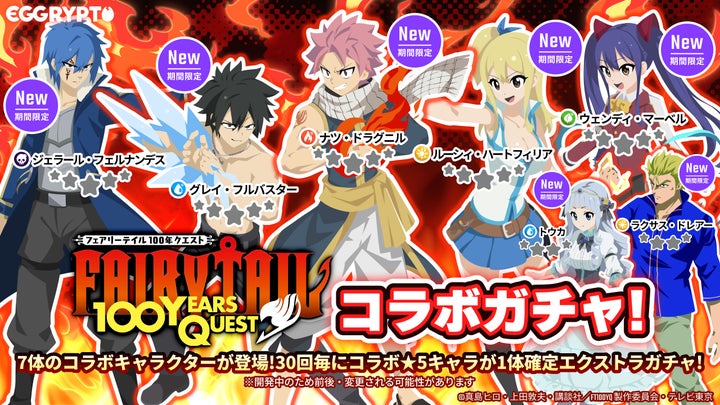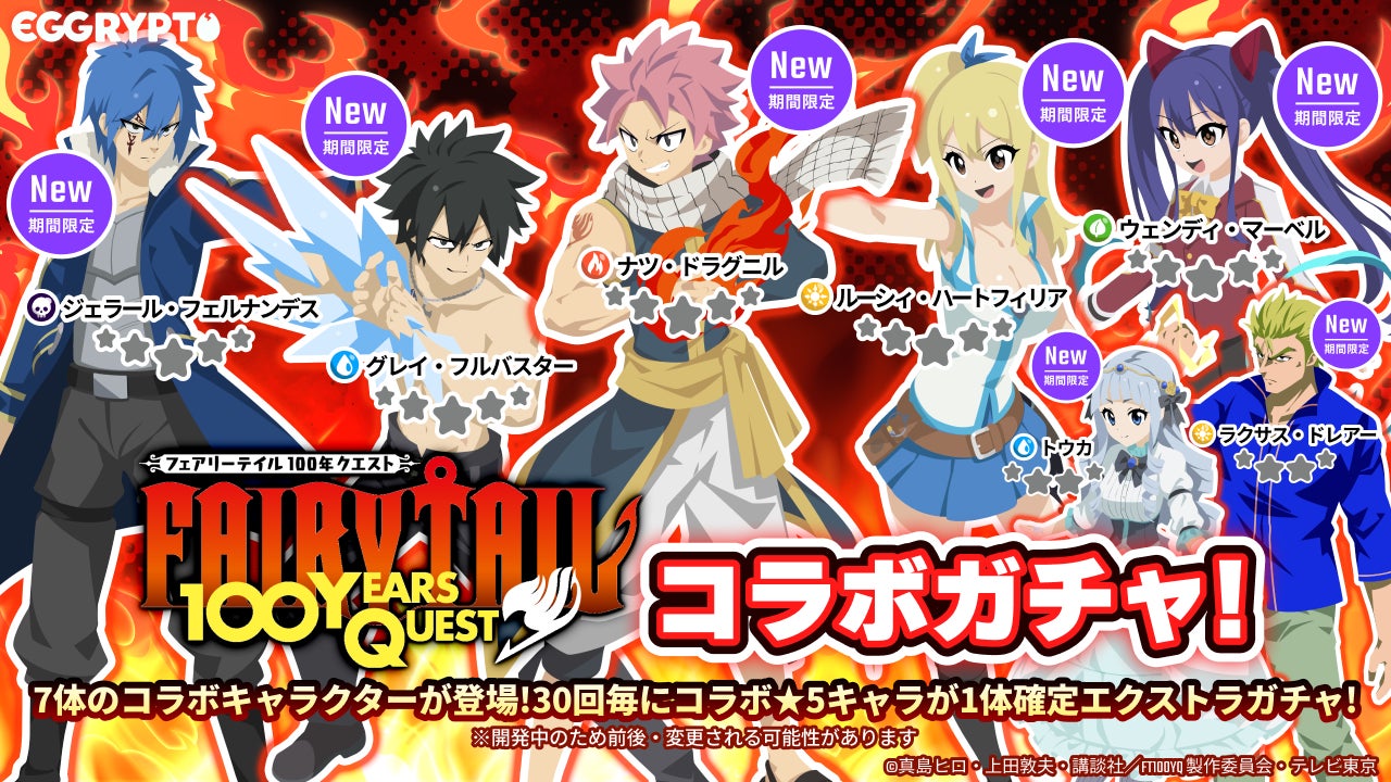 コラボイベントでは、「FAIRY TAIL 100年クエスト」の人気キャラクターが登場する限定ガチャや、コラボクエストが開催されます。