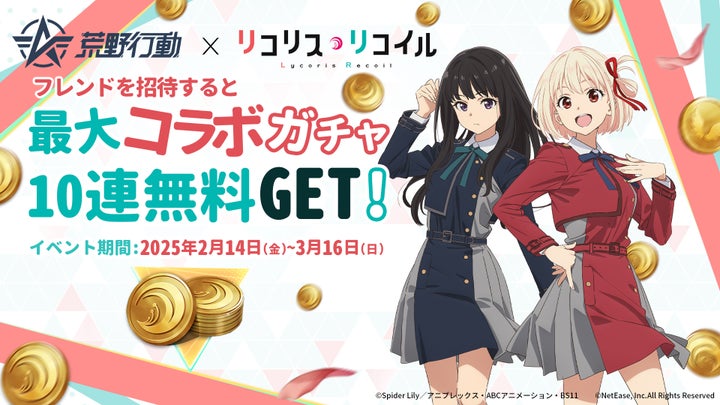 - 『荒野行動』と『リコリス・リコイル』のコラボイベント開催(2025年2月14日~3月16日)