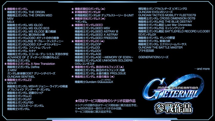 本作は、70作品以上のガンダムシリーズから500機以上のユニットが登場し、10作品以上のシナリオで原作を体験できます。