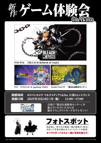 - BLEACH Rebirth of Souls、ドラゴンボール Sparking! ZERO、都市伝説解体センター