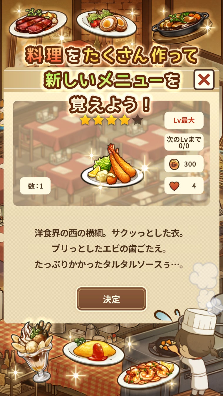 - 老舗洋食レストラン「洋食 さくら亭」の再建を目指す放置型育成ゲーム