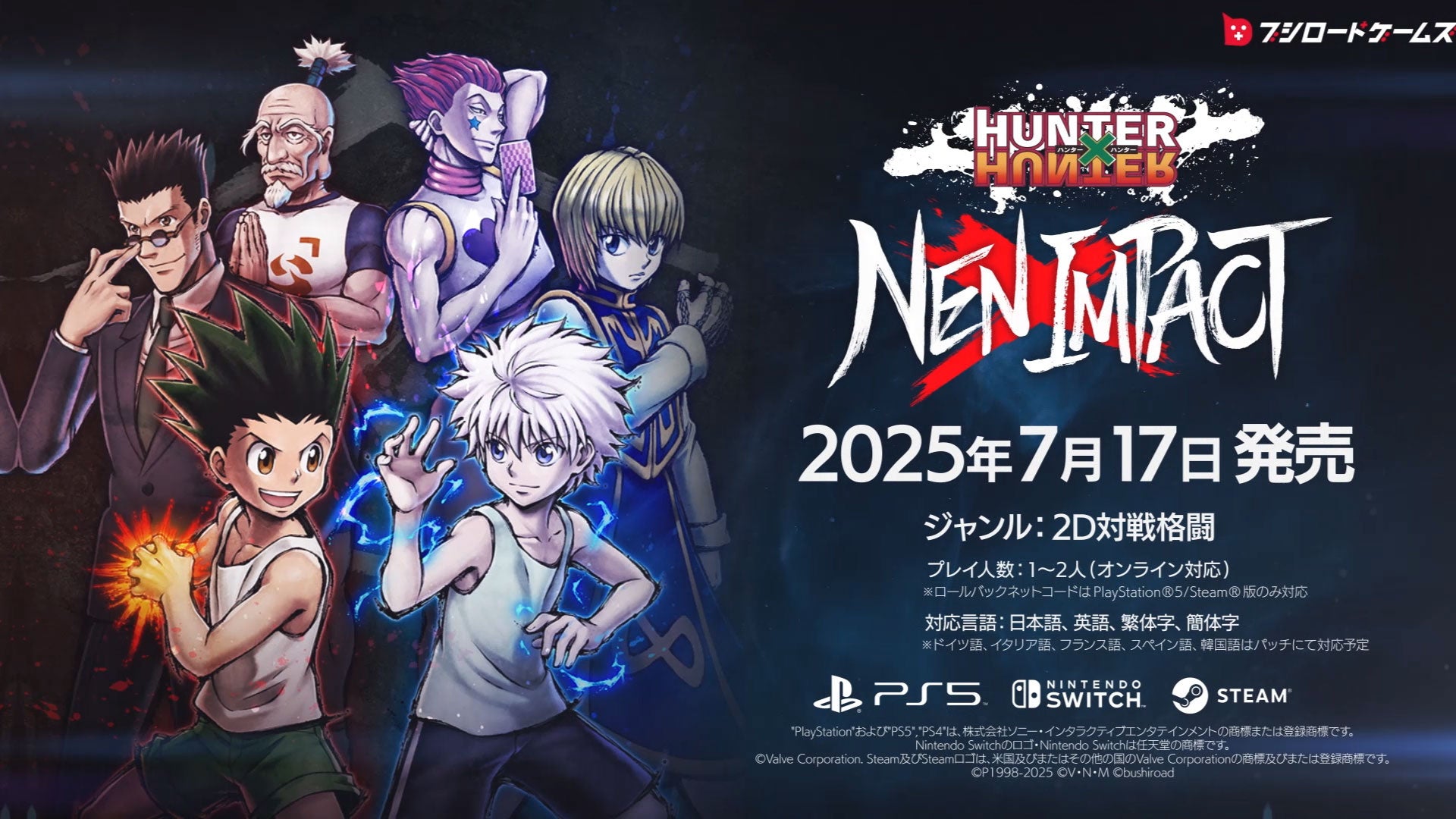 ブシロードは、2D対戦格闘ゲーム『HUNTER×HUNTER NEN×IMPACT』を2025年7月17日に全世界同時発売すると発表しました。