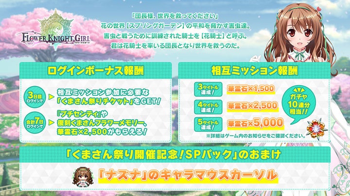 - 『FLOWER KNIGHT GIRL』では新イベント「野山に混じりて熊を討つ」も開催