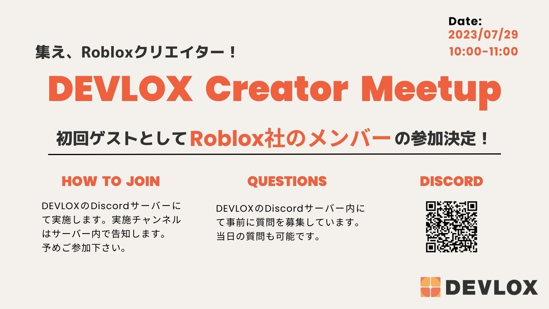 DEVLOXは、Robloxクリエイター支援事業を展開する会社で、7月29日に初回の交流イベント「DEVLOX Creator Meetup」を開催します。