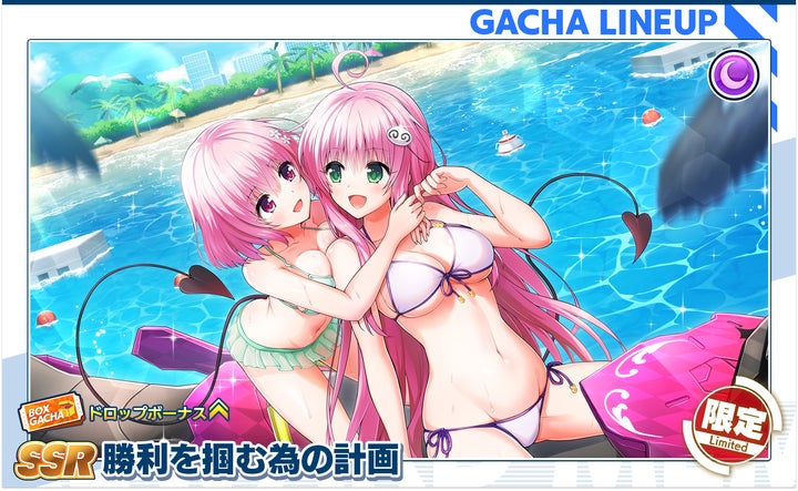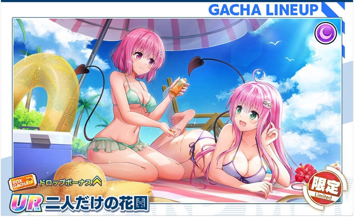 コラボ限定のガチャにはURララ(水着)、URモモ(水着)などの新キャラクターが登場します。