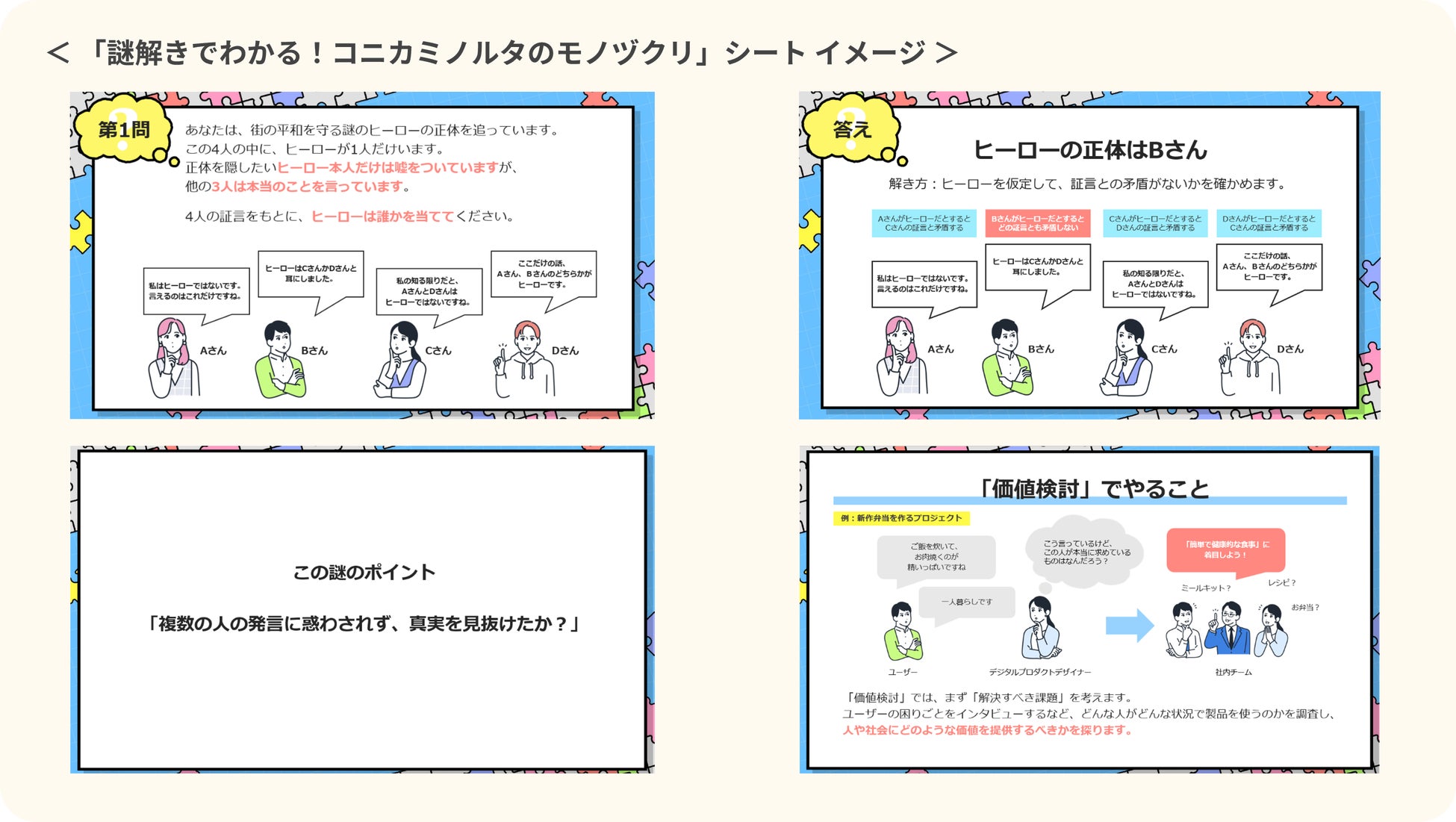 就活生にとってイメージしづらい業務内容などを謎解き形式で提示することで、能動的な理解促進を目指します。