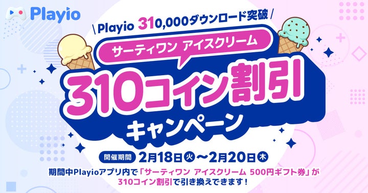 スマホゲーム向けポイ活アプリ「Playio(プレイオ)」が、累計ダウンロード数31万突破を記念し、サーティワン アイスクリーム 500円ギフト券を特別価格で交換できるキャンペーンを実施します。