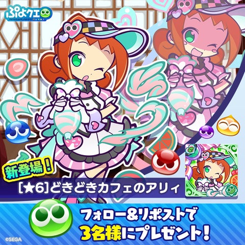 新キャラクター「どきどきカフェのあたり」と「どきどきカフェのアリィ」が登場する「ぷよクエカフェ記念ガチャ」、ギルドイベント「ぷよクエカフェ2025記念喫茶店ラッシュ」などが実施されます。