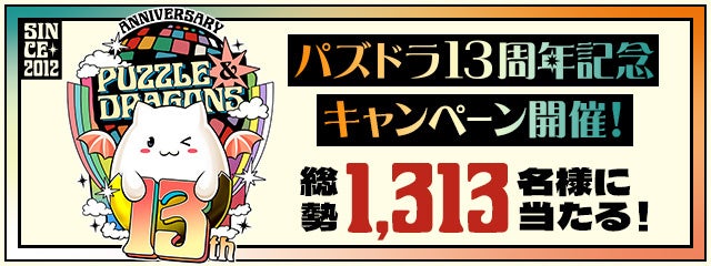 パズル&ドラゴンズ(パズドラ)が2025年2月20日にサービス開始13周年を迎えることを記念し、13周年記念イベントやキャンペーンが実施されます。