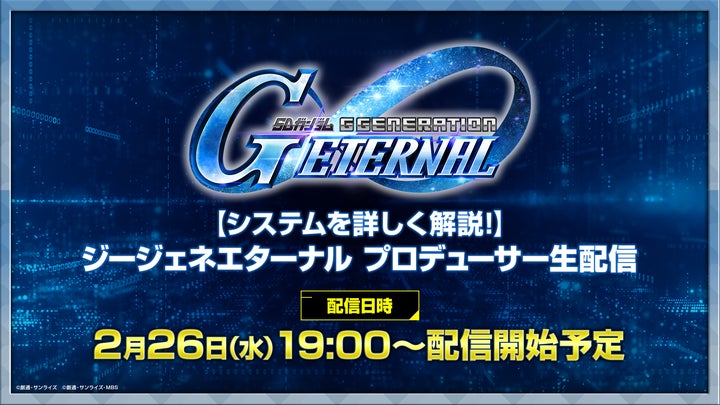 バンダイナムコエンターテインメントは、スマートフォン向けアプリゲーム『SDガンダム ジージェネレーション エターナル』の公式生配信番組を2025年2月26日19時に配信することを発表しました。