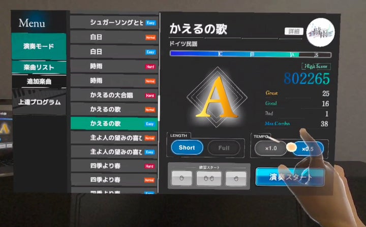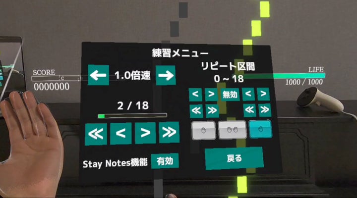 楽譜が読めなくても、VRゴーグルと電子ピアノを使って直感的に演奏できるのが特徴。