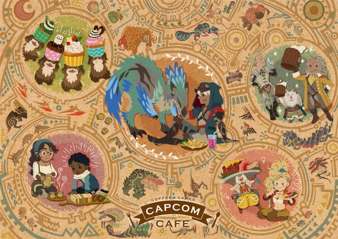 コラボでは、『モンスターハンターワイルズ』をテーマにしたメニューやグッズが展開され、メインビジュアルにはセクレトや調査隊の仲間たちがカフェを楽しむイラストが使用されています。