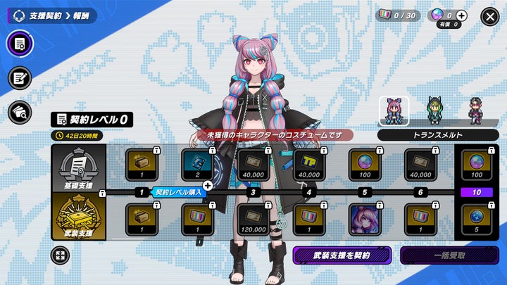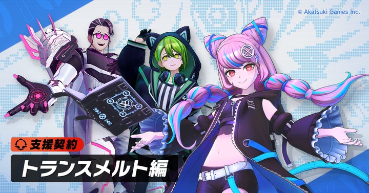 ゲーム内ではバトルパス機能「支援契約 トランスメルト編」も開催され、限定コスチュームやアイテムを獲得できます。