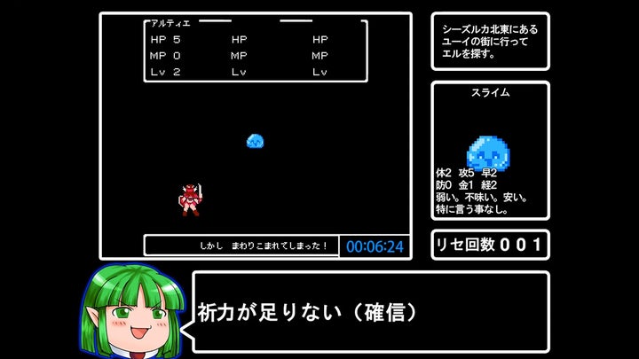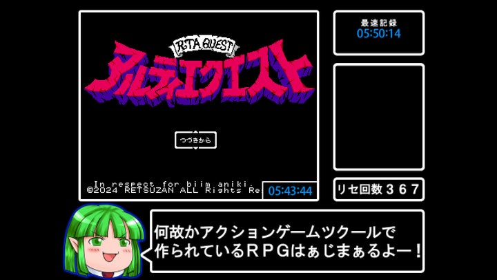本作は『アクションゲームツクールMV』を使用して制作されており、懐かしさを感じるドット絵グラフィック、ゆっくり実況システム、RTA要素(biim兄貴リスペクトの画面レイアウト)が特徴です。