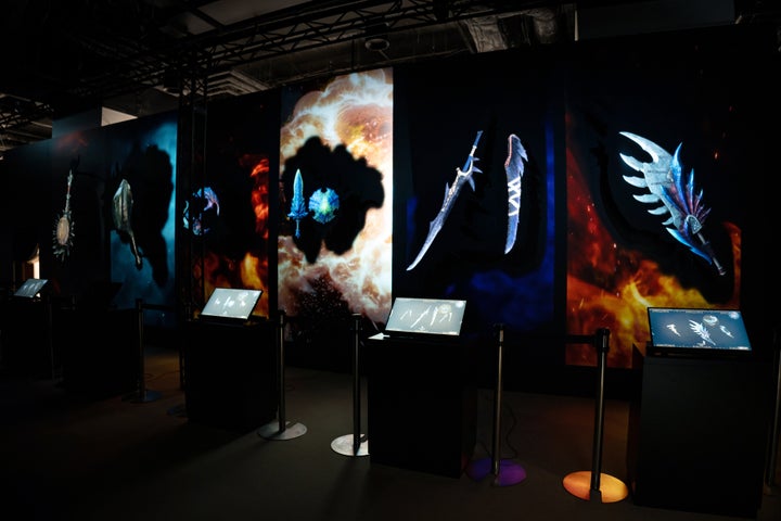 会場にはアニバーサリーシアターや武器・防具の展示、歴代のモンスターハンターシリーズの展示、グッズ販売コーナーなどがあります。