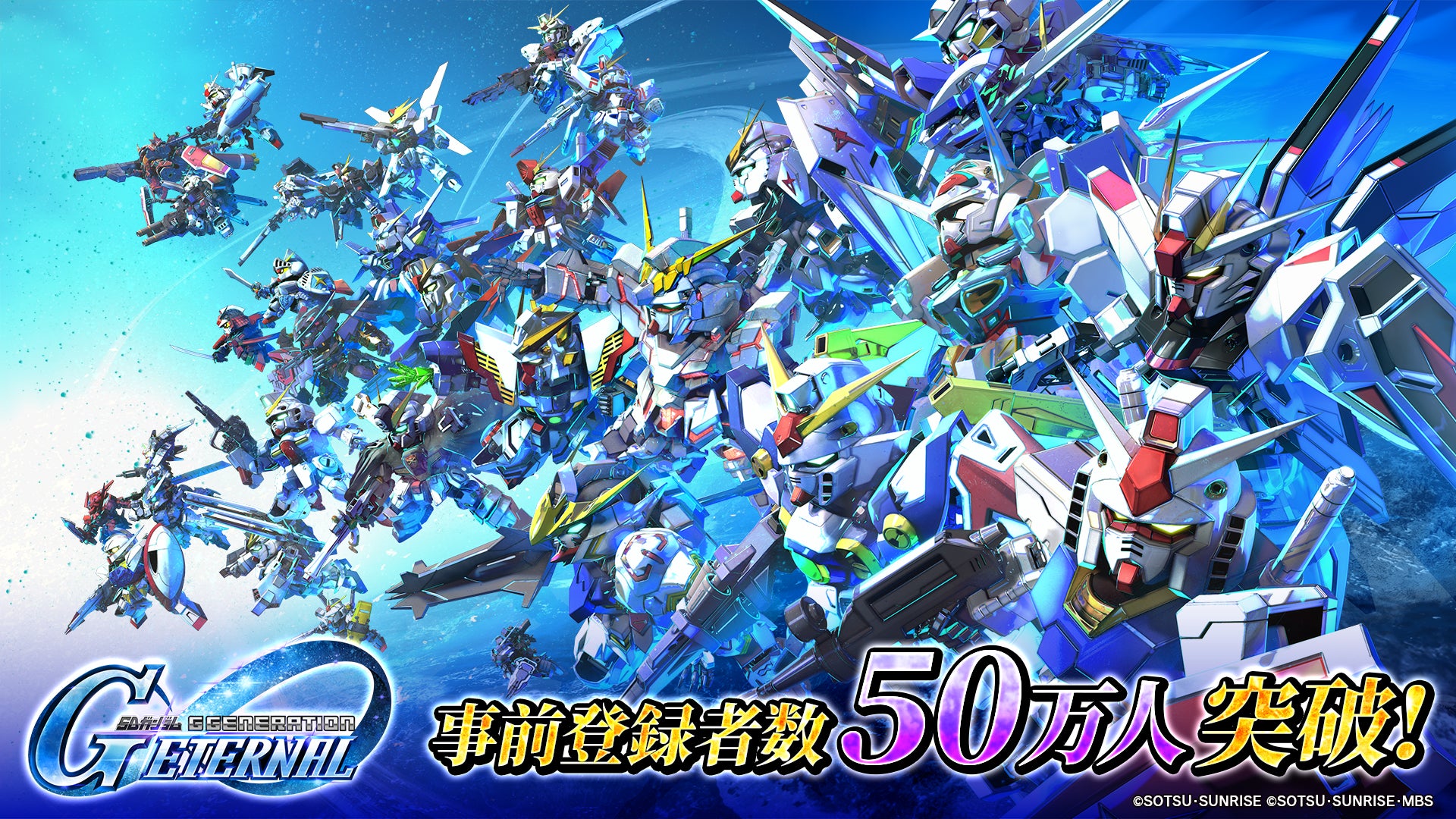 『SDガンダム ジージェネレーション エターナル』の事前登録者数が50万人を突破し、追加報酬が発表された。