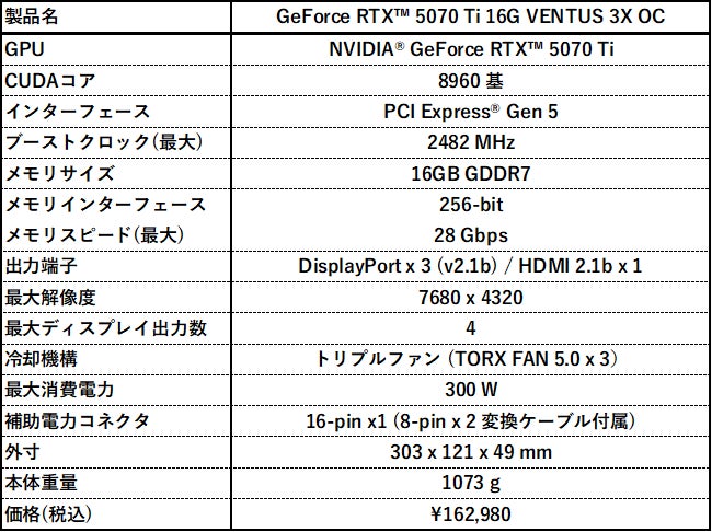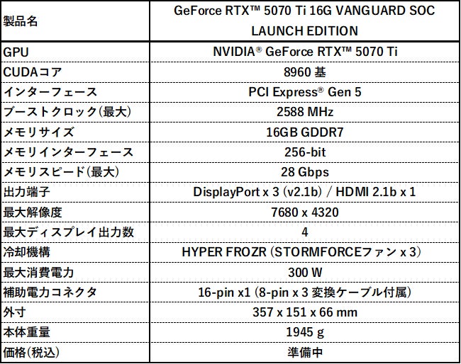 - NVIDIA GeForce RTX 5070 Ti搭載グラフィックスカード3製品を発売