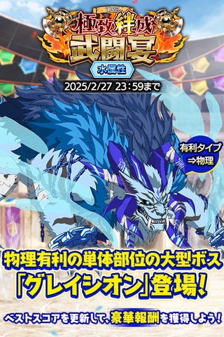 - 大型ボス「グレイシオン」に挑戦するイベント「極致絆成武闘宴」開催