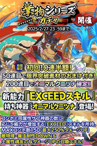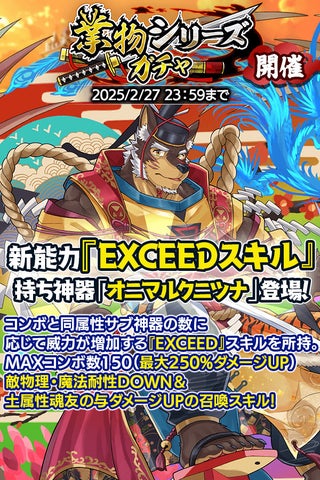 - 「EXCEED」スキルを持つ新神器「オニマルクニツナ」が登場するガチャ開催