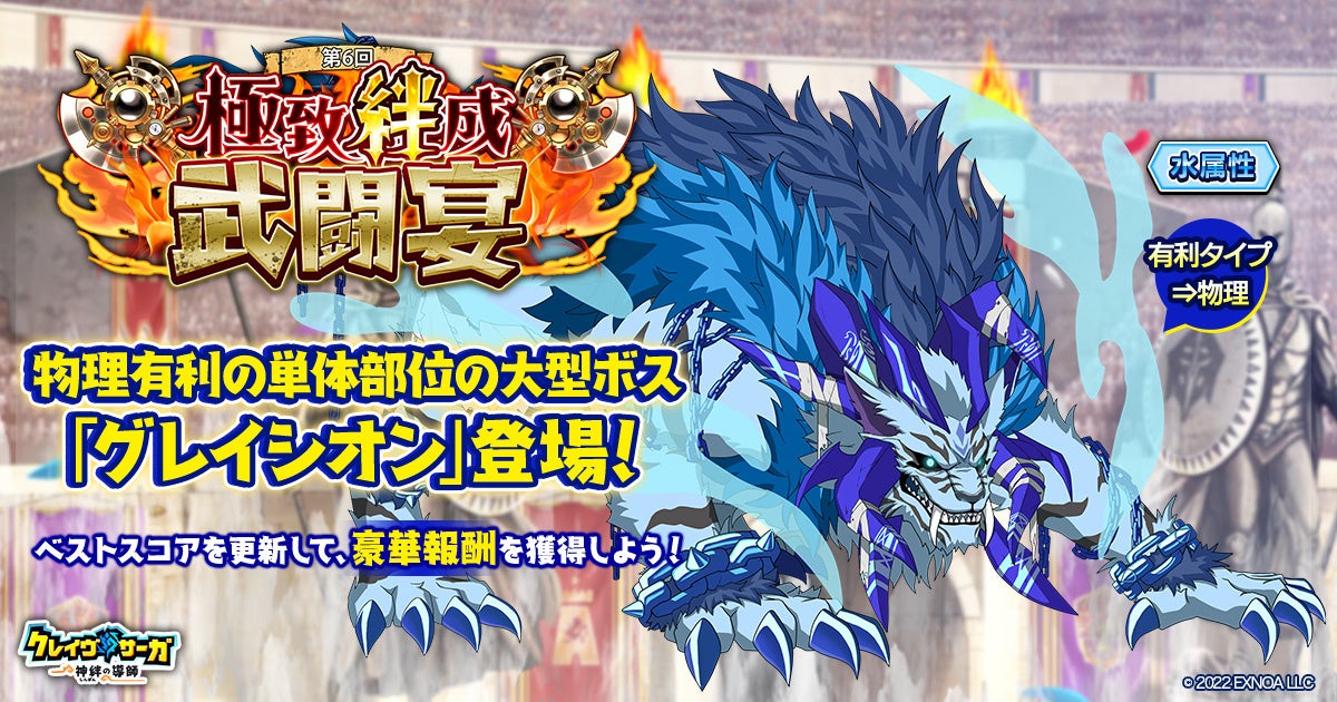 DMM GAMESで配信中のRPG『クレイヴ・サーガ 神絆の導師』にて、2月21日より大型ボス「グレイシオン」に挑戦するイベント「極致絆成武闘宴」が開催されました。
