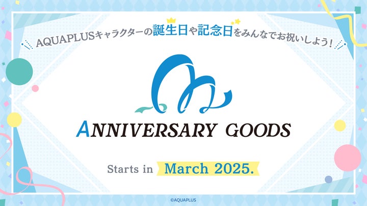 株式会社HIKEは、2025年3月よりアクアプラス作品に登場するキャラクターの誕生日や記念日をお祝いするプロジェクト「AQUAPLUSアニバーサリーグッズ」を開始します。