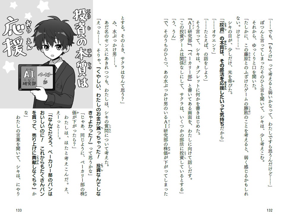 この小説は、投資をテーマにしたストーリーで、小学生向けにお金の知識を楽しみながら学ぶことができます。