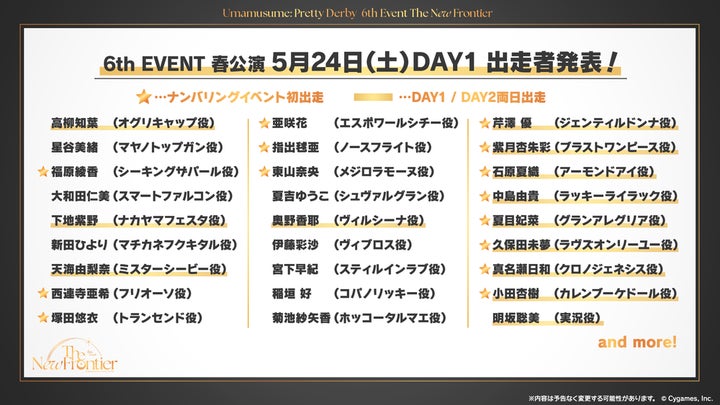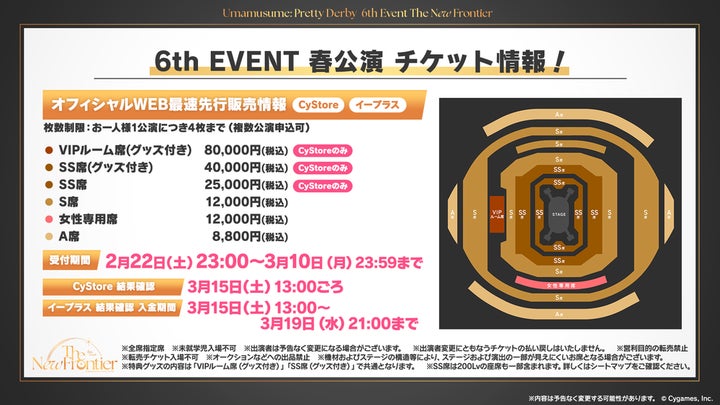 Cygamesは、『ウマ娘 プリティーダービー 6th EVENT The New Frontier』の春公演と秋公演をさいたまスーパーアリーナで開催すると発表しました。