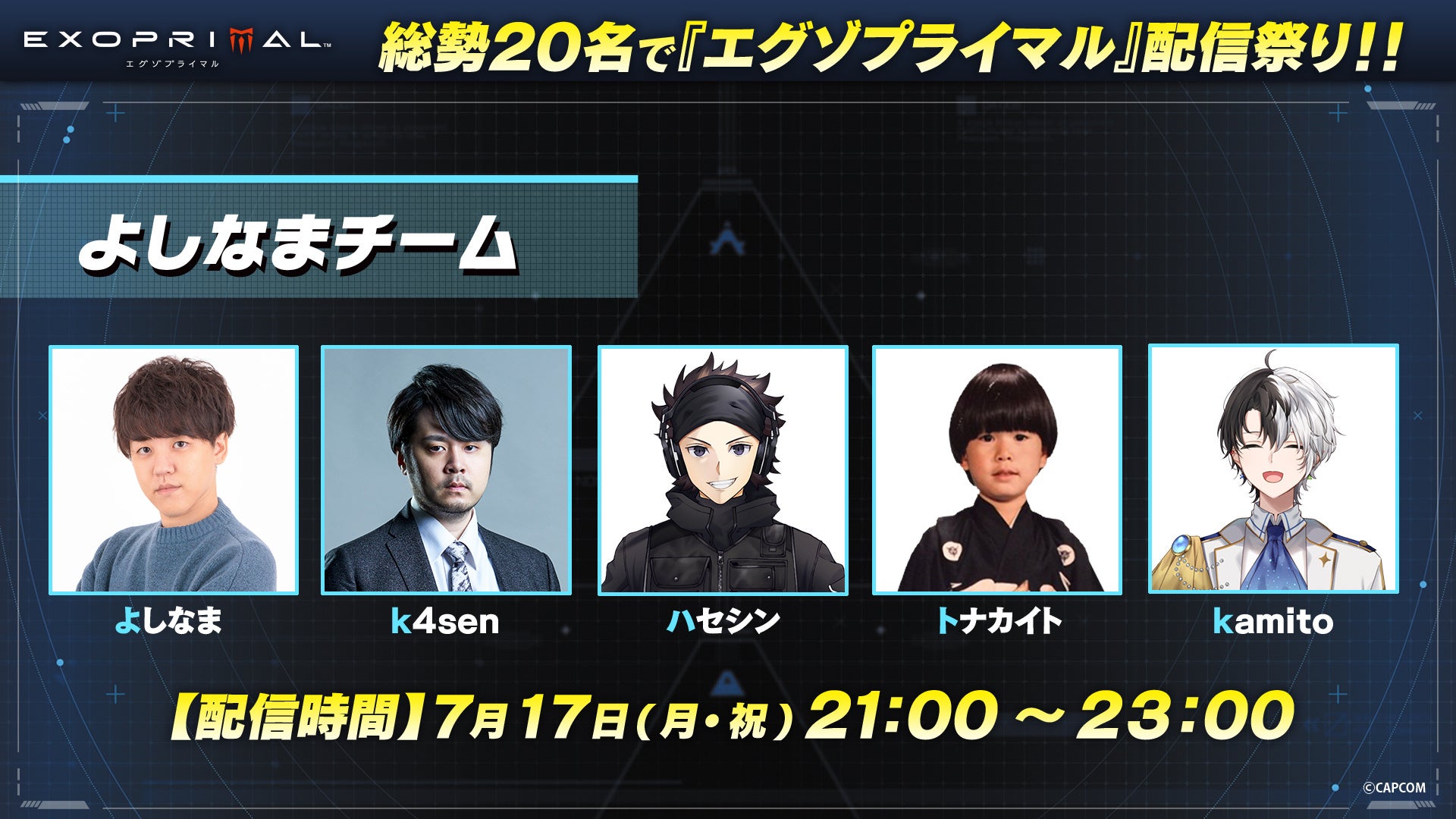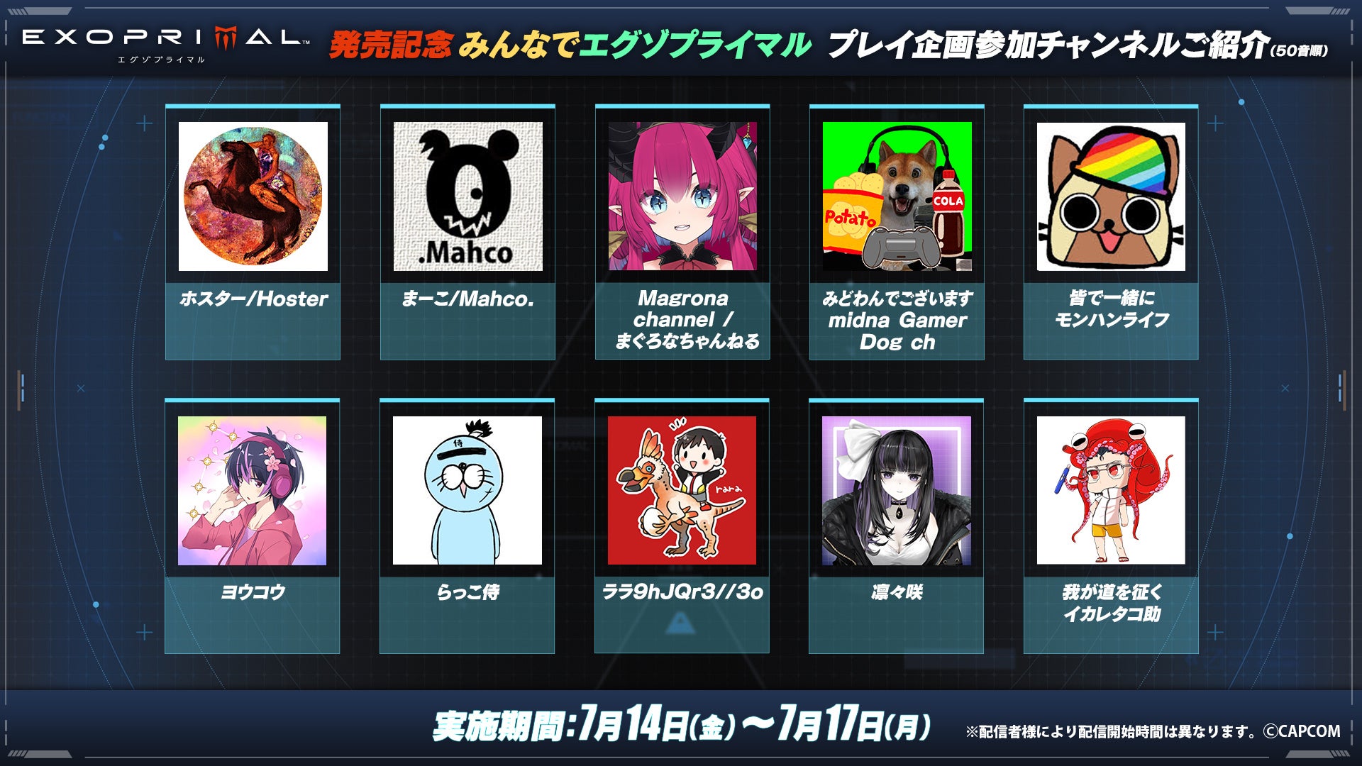 また、発売日からは多数の配信者が参加する「みんなでエグゾプライマル プレイ企画」も開催されます。