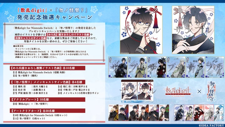 アイディアファクトリーは、Nintendo Switch用ゲームソフト「数乱digit for Nintendo Switch」と「勿ノ怪契リ」の発売を記念したキャンペーンを実施します。