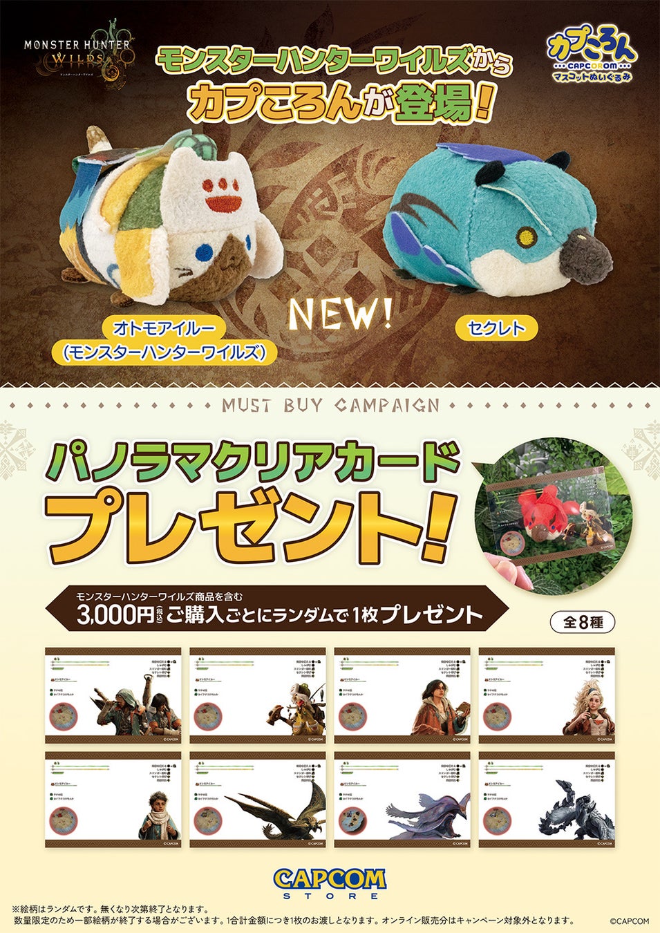 また、同日発売日より、カプコンストア4店舗(東京、大阪、梅田、アネックス)で、『モンスターハンターワイルズ』関連商品を税込3,000円以上購入すると、「パノラマクリアカード」をプレゼントするキャンペーンを実施。
