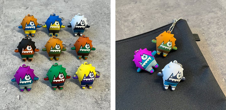 カプセル版と、カプコンストア限定のワンタッチ式キーホルダー版の2種類があり、サイズは約3.8cm。