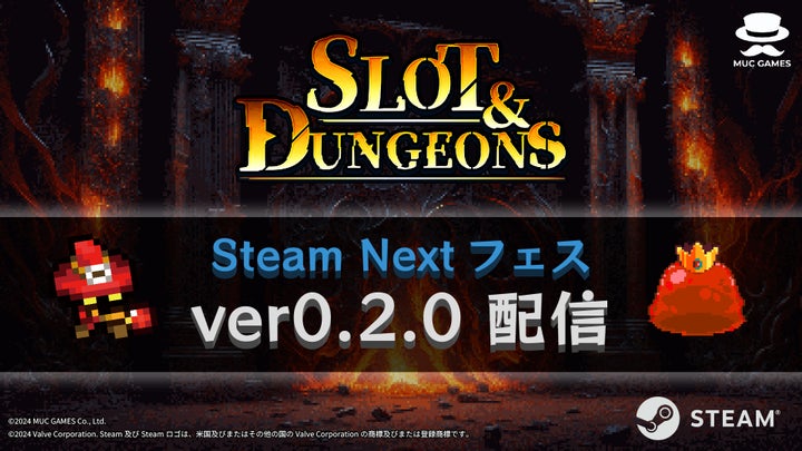 株式会社MUC GAMESは、デッキ構築型スロットローグライトゲーム『Slot & Dungeons』の大型アップデート「ver0.2.0」をリリースし、Steam Nextフェスに出展することを発表しました。