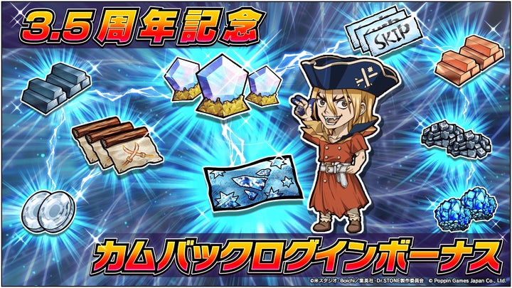 - 『Dr.STONE バトルクラフト』3.5周年記念ログインボーナス&復刻ガチャ開催