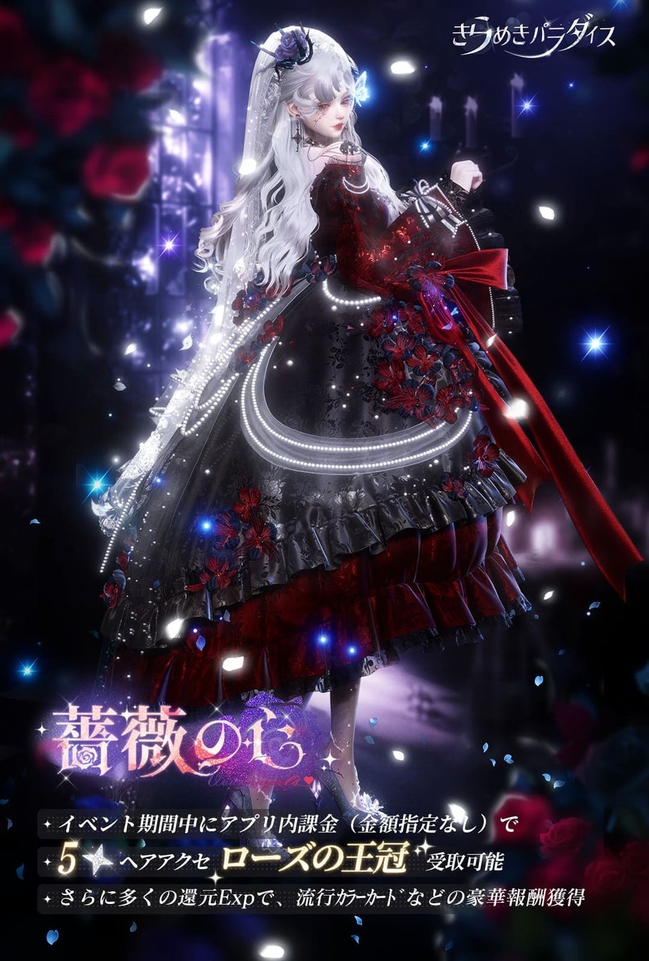 アプリ内チャージで星5ヘアアクセ『薔薇の心』もプレゼントされます。