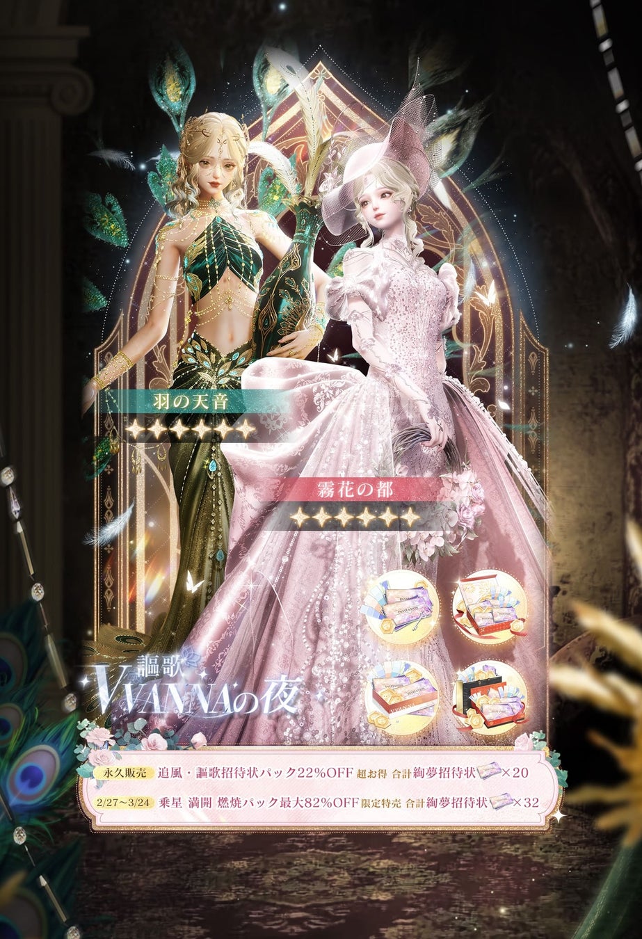 - 2月27日より新恒常ガチャ『謳歌』登場、星6セット2種、星5セット、SSR絆追加