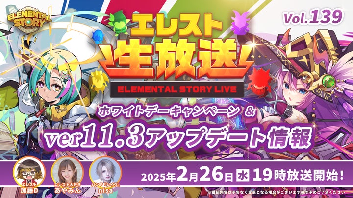 • 2月26日(水)19:00より『エレメンタルストーリー』公式生放送vol.139配信