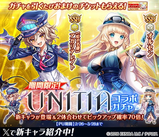 神姫PROJECT×UNITIAコラボ!オルセン&アガリアレプト登場!最大300連無料ガチャ!