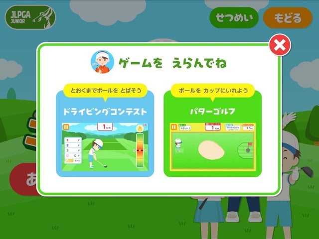 - 「ドライビングコンテスト」と「パターゴルフ」の2種類のゲームモード