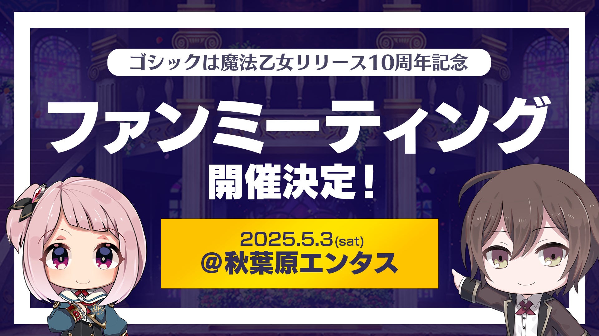シューティングゲームアプリ『ゴシックは魔法乙女~さっさと契約しなさい!~』(ごまおつ)のリリース10周年を記念して、2025年5月3日(土)に秋葉原エンタスにてファンミーティングが開催されます。
